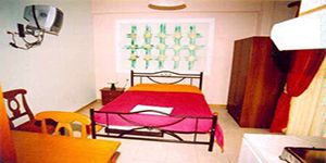 Garsonjera 1/3: u jednoj prostoriji bračni i jedan običan ležaj, čajna kuhinja odvojena od spavaćeg dela.