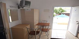 Idealan je za sve generacije. Nalazi se na 300 m od plaže. Studio apartmani su prostrani, kompletno opremljeni (kuhinja+TV+A/C). Peškiri i posteljina se menjaju na 5 dana.